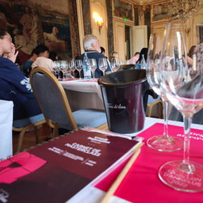 A tasting of several Chateau Angelus wines in Bordeaux. A vertical of several Chateau Angelus wines guided by Stéphanie de Boüard and Sommelier Omar Barbosa( best sommelier in France)